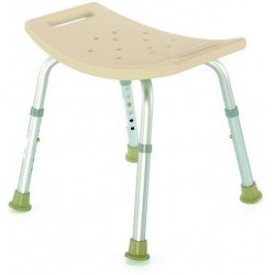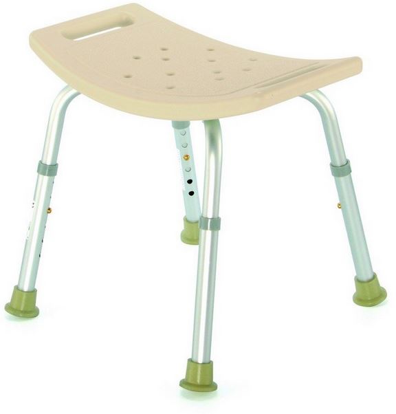 Praktická pojízdná židle s brzdičkami a výsuvnou jednodílnou podnožkou do sprchy.