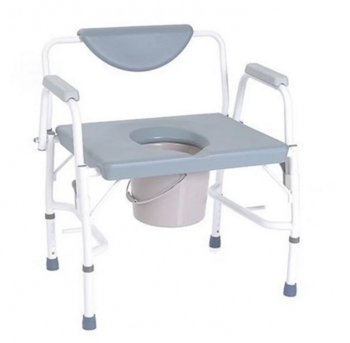 Bariatrické toaletní křeslo má gumové opěrky a stejně tak gumové, protiskluzové konce nohou. Díky nastavitelné výšce lze křeslo přizpůsobit individuálním potřebám jedotlivce. Kovová konstrukce křesla zajišťuje vysokou nosnost až 290 kg.